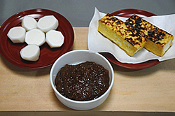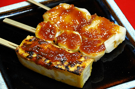 - 網焼きで両面を焼き、田楽味噌をのせてからさらにもう一度焦げ目をつけてからいただく。