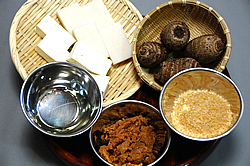 - 揚げ豆腐は木綿納豆を布巾にくるみ、まな板に挟んで1時間程度脱水し、長方形に切ってから菜種油でから揚げる。(生揚げはそのまま)、もちは食べやすい大きさに切る。